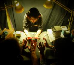 sleutel weg? Vind hem dan terug met een magneet. ‘Hamertje Tik’ is een installatie waar je speelt met tastbaar materiaal, ontdekt hoe de dingen echt in elkaar zitten en de mechaniek ervan werkt. Inspirerend voor zowel de allerkleinsten (waar zit de opening van een doosje) als iets oudere kinderen (hoe ver schijnen zaklampjes). En voor de ouders ... die herkennen vast nog veel.