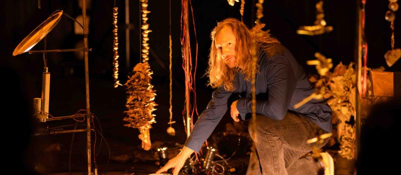 Beckers’ fascinatie voor alledaagse geluiden vertaalt zich in het maken van klanksculpturen. Hij bouwt zelf instrumenten met elementen uit de natuur zoals stenen, zand, kastanjes, bladeren ...
